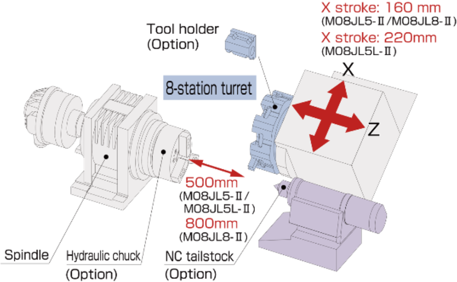 Extends machining capacity with 500mm-machining length (M08JL5L-Ⅱ).