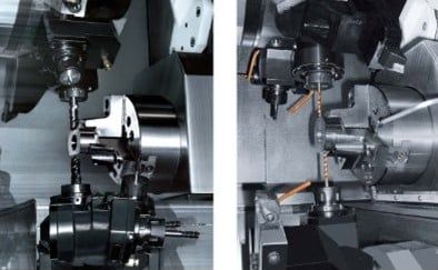 - 2 turret / 2 spindle configuration for significantly reduced cycle time