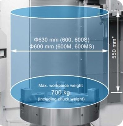 | Max. machining diameter | ø630 mm | ø600 mm | |