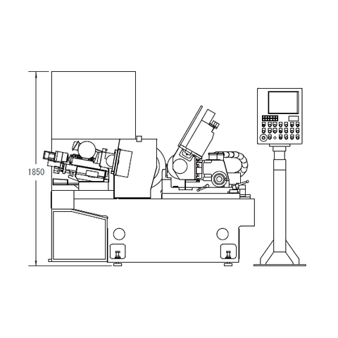 Twin Grip Grind Spindle accommodating a max wheel size of 205mm in diameter by 455mm wide capable of Grinding speeds up to 90m/sec.