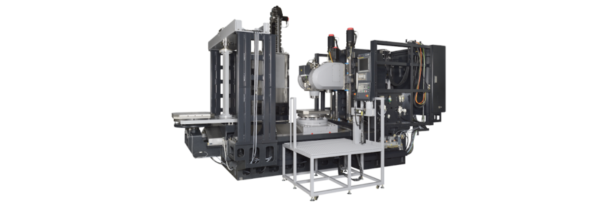 With the use of a tilted spindle head structure, this machine boasts better accessibility and visual recognition to its works than before, making itself easier to operate. In addition, with the spindle head tilted, the product can perform machining with its spindle positioned vertically or horizontally, expanding the range of machining layouts.