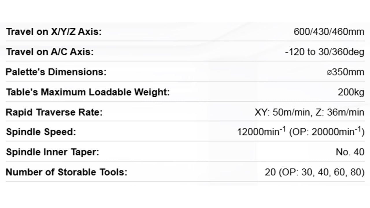 The VC-X350 is a specialized 5-axis machining center developed from OKK’s advanced technologies. This machine eliminates loss of accuracy and burden on the operators caused by multi-setup operations, and also shortens lead times through process integration.