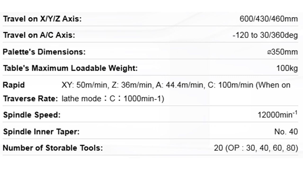 The OKK VC-X350L is a specialized 5-axis machining center developed from OKK’s advanced technologies. This machine eliminates loss of accuracy and burden on the operators caused by multi-setup operation and shortens lead time under process integration.