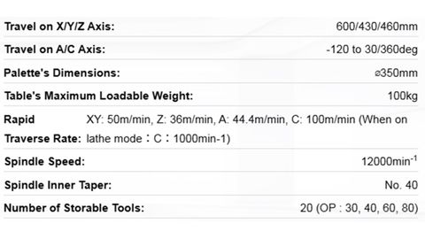 The VC-X350 is extremely rigid and features a table that can handle titanium and other hard metals. It is ideal for integration with an Automatic Work Changer, and includes a magazine with 60 capacity.