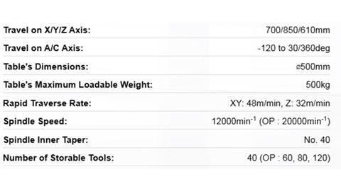 This specialized 5-axis machining center has been developed from OKK’s advanced technologies. This machine eliminates loss of accuracy and burden on the operators caused by multi-setup operation and shortens lead time under process integration. Ideal for integration with an Automatic Work Changer, includes magazine with 60 capacity. The VC-X500’s design offers improved accessibility and the highest-level space saving and loadable workpieces size amongst its class.