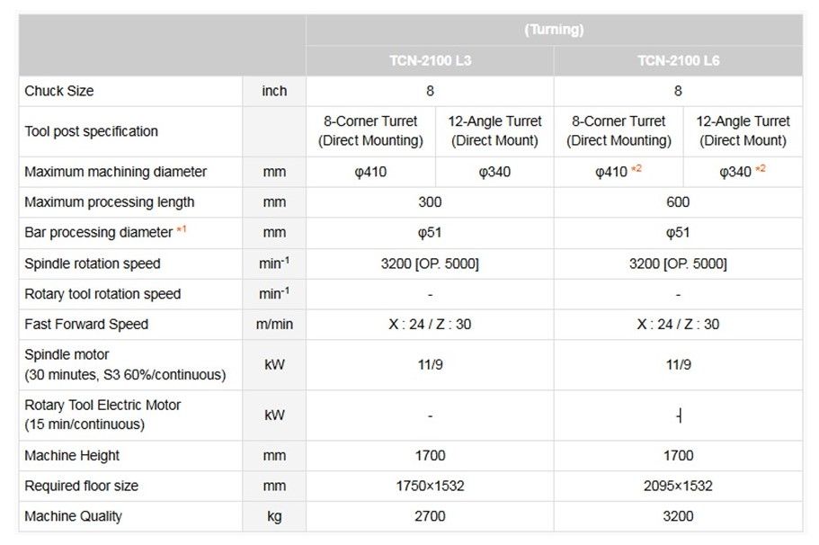 *2) In the case of L6 specifications, the maximum machining diameter may be limited depending on the workpiece size. For details, please refer to "About the processing range" in the product catalog.