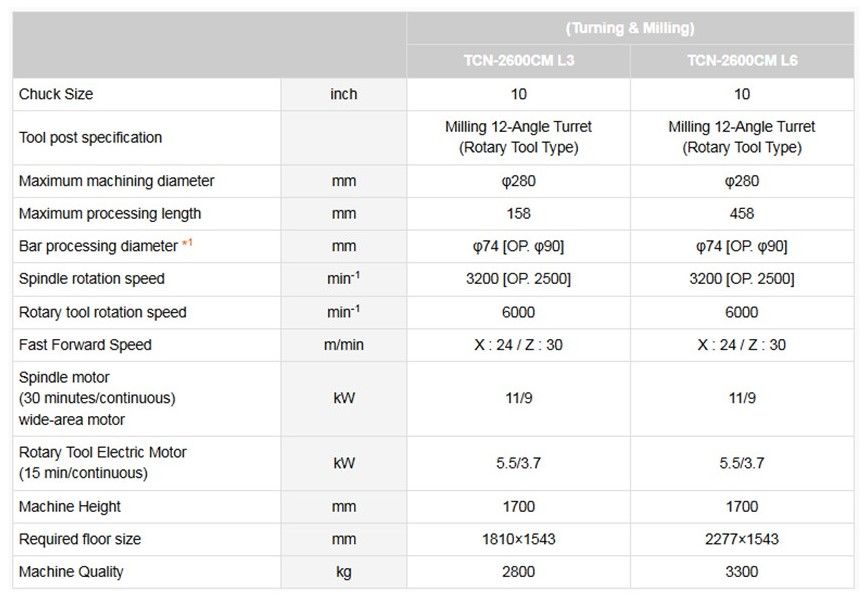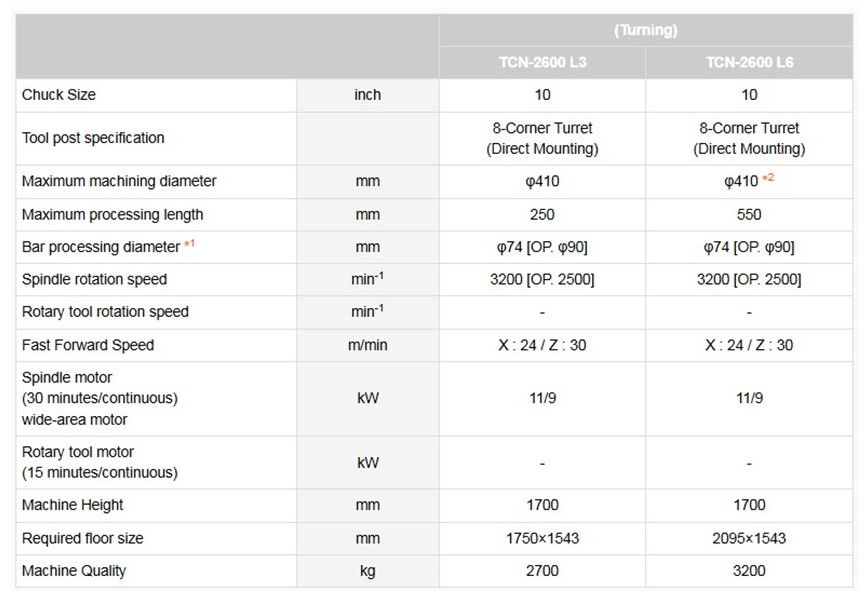 *2) In the case of L6 specifications, the maximum machining diameter may be limited depending on the workpiece size. For details, please refer to "About the processing range" in the product catalog.