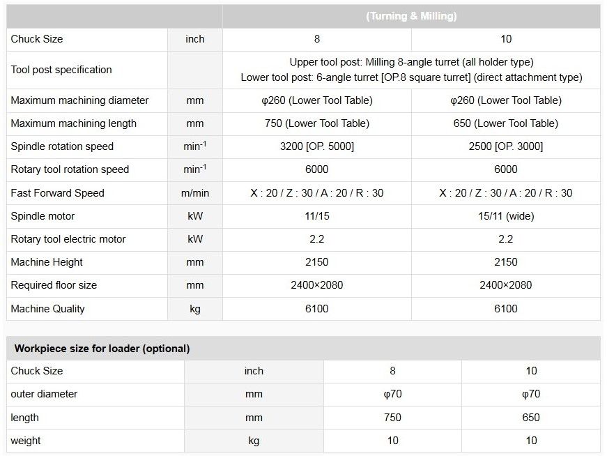 The approach to a variety of workpieces with the upper and lower tool posts significantly reduces cutting time.
