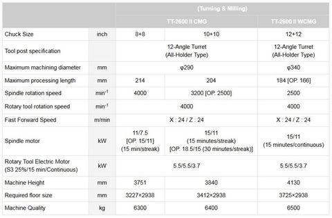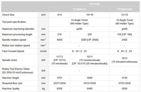 The TT-2600G has been renewed with a box-type bed with high rigidity and resistance to thermal displacement, and a parallel 2-spindle TT-2600G with an all-axis square slideway.