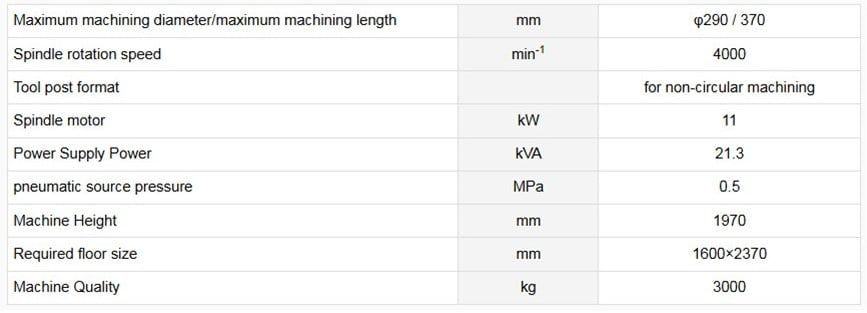 All functions required for oval machining of the outer diameter of the engine piston are condensed into one unit. It provides a simple and easy-to-use environment at a reasonable price. On the premise that it will be introduced at the mass production processing site of pistons, the configuration is simple, easy to integrate into the line, and good maintenance performance is achieved in a compact space.