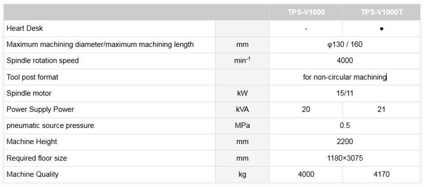 It is a vertical CNC piston processing machine with the smallest machine width in its class at 1180 mm due to its vertical structure, which greatly enhances its performance. The use of ceramic sliding and linear motor drive in the non-circular processing equipment enables the reduction of machining time due to high-speed machining. The lineup includes the standard specification "TPS-V1000" and the "TPS-V1000T" that supports the spindle synchronous rotation type NC servo tailstock specification. By equipping it with an optional comb blade plate, it can also be used for process intensification other than non-circular machining.