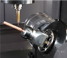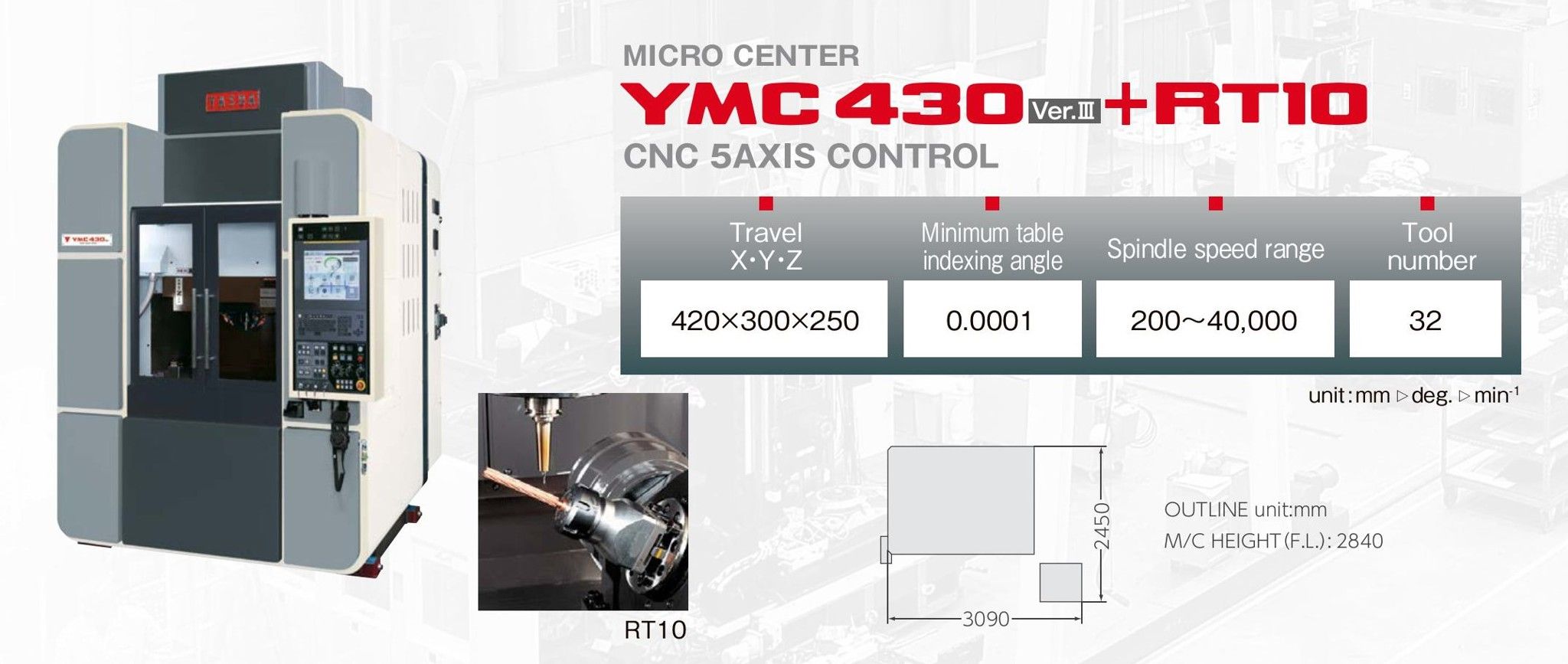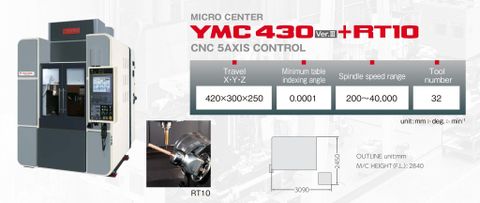 Rotary table made by YASDA is mounted on the YMC 430, which is ideal for micromachining.
