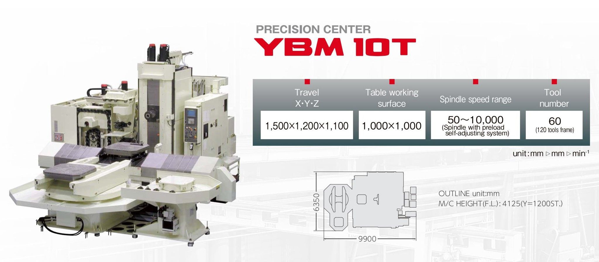 1,000 mm square tableMother machine with excellent thermal stability and durability